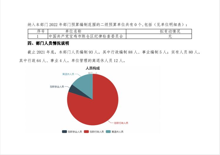 中国共产党宝鸡市陈仓区纪律检查委员会2022年部门综合预算